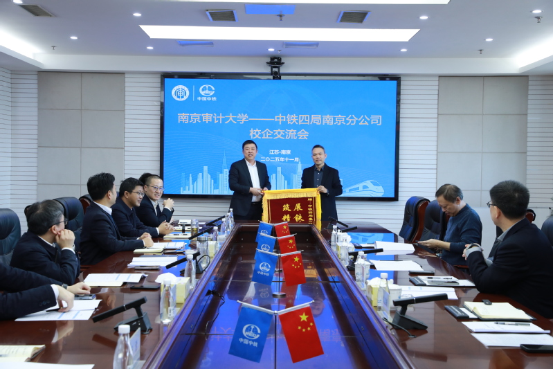 会上,为感谢中铁四局南京分公司在我校学生宿舍项目建设中所付出的辛勤努力与卓越贡献,丁舰丰代表南京审计大学向中铁四局南京分公司郑重赠送锦旗。刘玉向中铁四局南京分公司赠送感谢信,进一步巩固了双方深厚的合作情谊。锦旗和感谢信不仅是学校对企业精益求精施工态度的认可,更是双方深化合作的生动见证。
